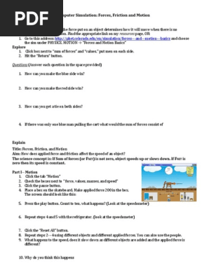 Phet simulation lab answer key forces and motion basics force motion friction.